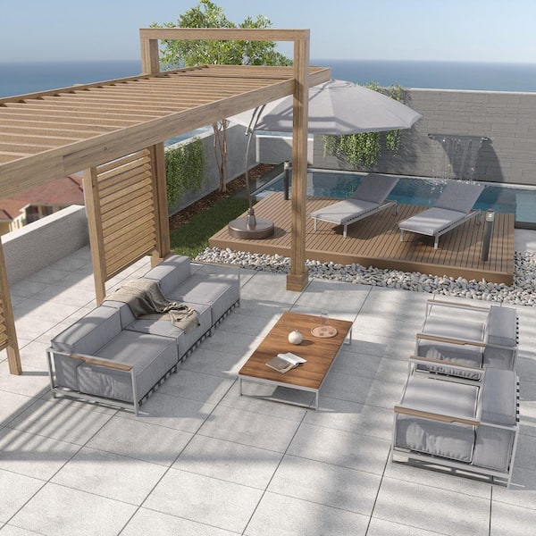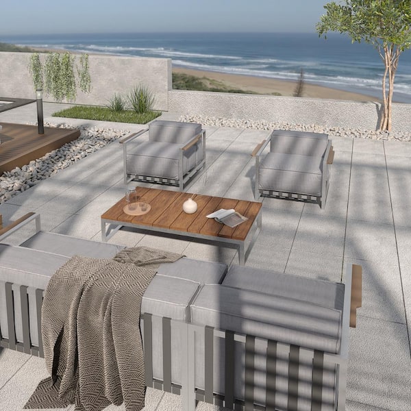 Sunrise Collection, 6-piece Extra Deep Seating Metal Patio Conversation Set with Grey Cushions
