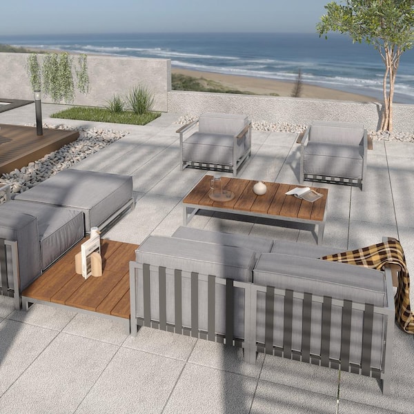 Sunrise Collection, 8-piece Extra Deep Seating Metal Patio Conversation Set with Grey Cushions