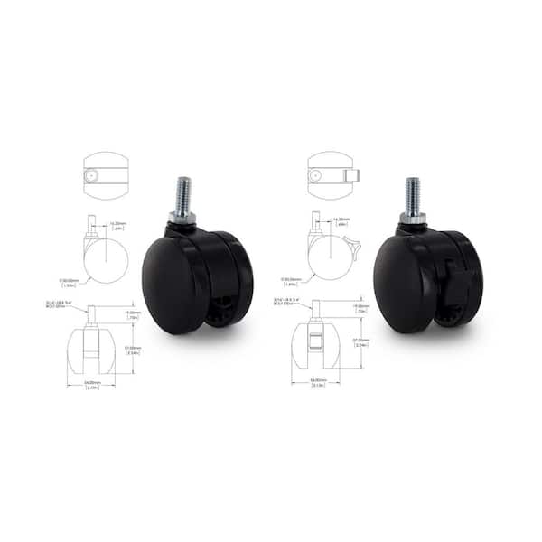 2 in. Black Furniture Swivel Brake Caster 440 lbs. Load Rating for 1-1/8 in. Round, 16 up to 18 gauge tubing (4-Pack)
