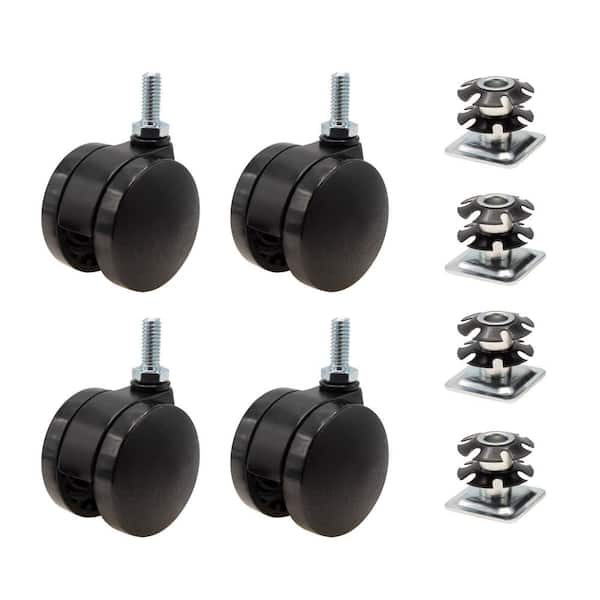 2 in. Black Furniture Swivel Caster with 440 lbs. Load Rating for 1-1/8 in. Square, 16 up to 18 gauge tubing (4-Pack)