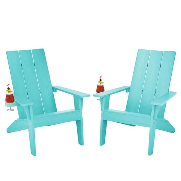 Oversize Modern Aruba Blue Plastic Outdoor Patio Adirondack Chair with Cup Holder (2-Pack)