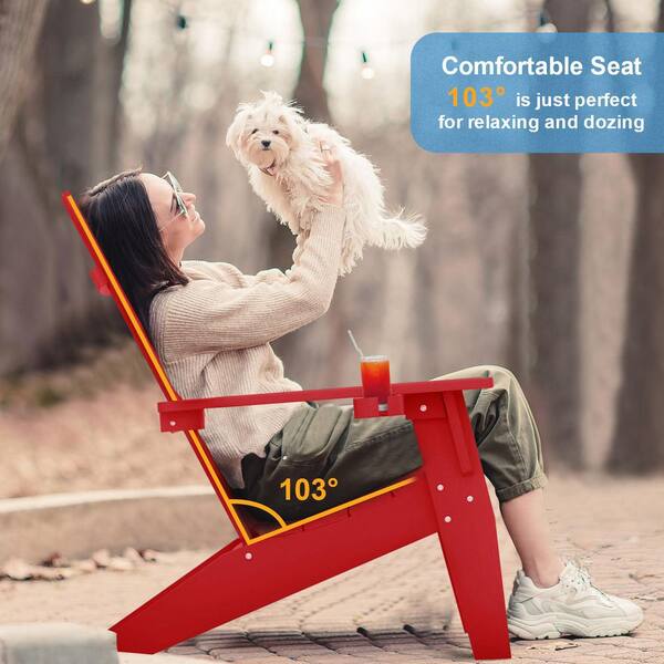 Oversize Modern Red Plastic Outdoor Patio Adirondack Chair with Cup Holder (2-Pack)