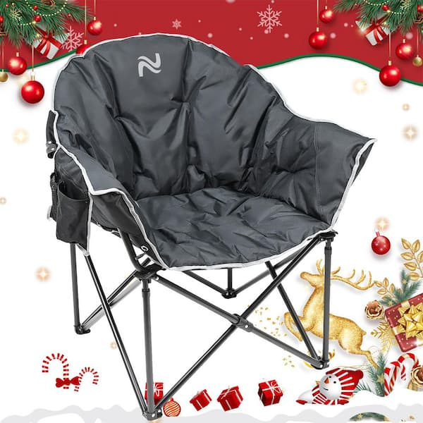 Oversized Camping Chair, Fully Padded Folding Moon Saucer Chair, Heavy-Duty Folding Chair with Cup Holder & Carry Bag