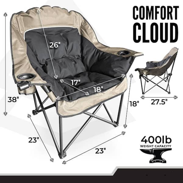 Oversized Camping Chair for Adults, Heavy Duty Outdoor Seat with Plush Padding, Supports 400 lbs. Black and Tan