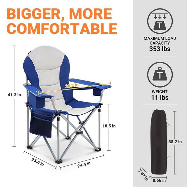 Oversized Camping Folding Chair Heavy Duty Ergonomic Padded Arm Chair Portable Navy/Grey