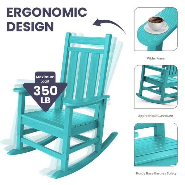 Oversized HDPE Resin Outdoor Patio Rocking Plastic Adirondack Chair in Aruba Blue (1-Pack)
