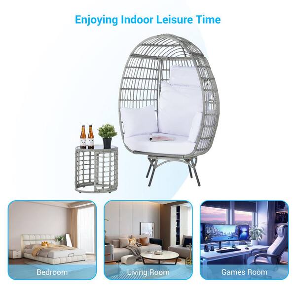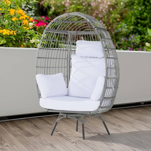 Oversized Patio Gray Wicker Swivel Egg Chair, Indoor Outdoor Rattan Egg Chair