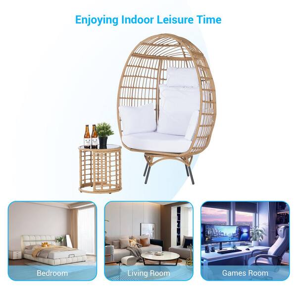 Oversized Patio Wicker Swivel Egg Chair, Indoor Outdoor Rattan Egg Chair