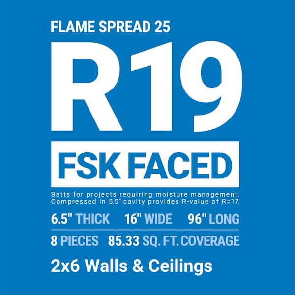 R-19 Faced Flame Spread Fiberglass Insulation Batt 16 in. x 96 in.