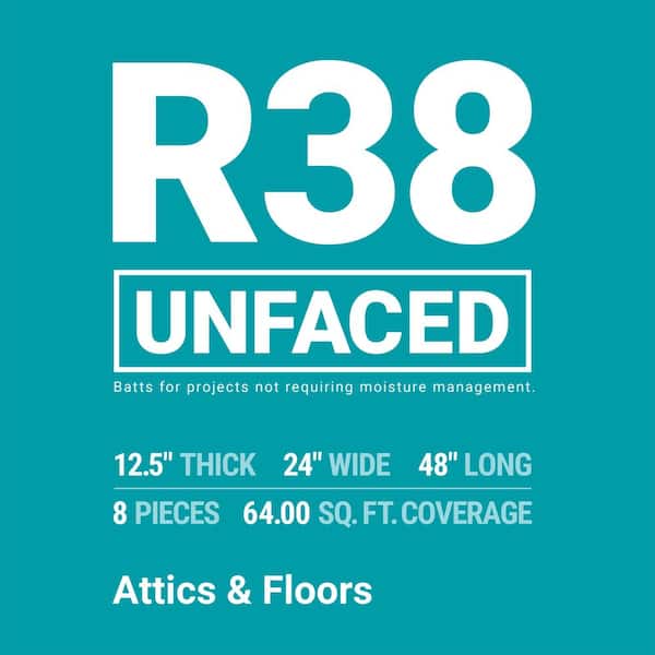 • R-38 unfaced insulation, easy attic & floor install