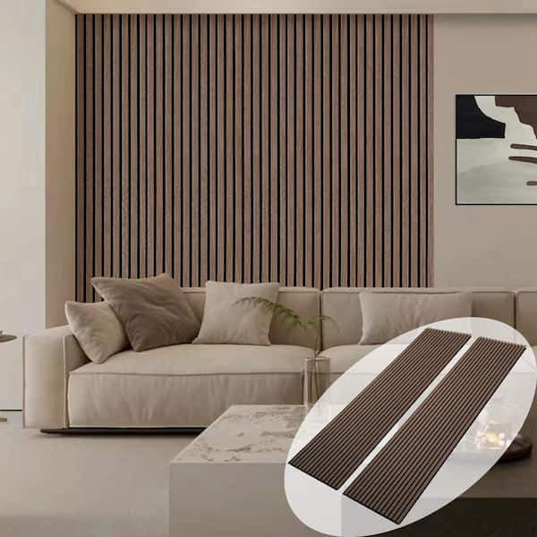 0.8 in. x 1 ft. x 8 ft. Natural Wood Slat Acoustic Panels, Brown MDF Decorative Wall Paneling 2 Pieces (16.5 Sq. Ft.)