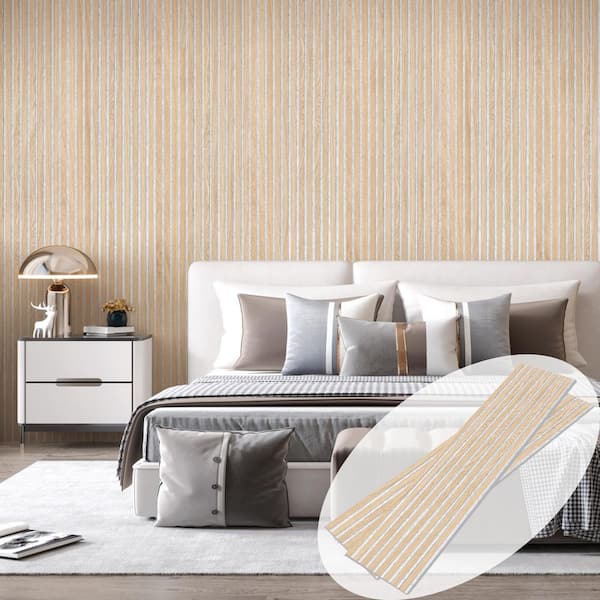 Natural Oak Gray Felt 0.8 in. x 1 ft. x 8 ft. Yellow Wood Slat Acoustic Panels, MDF Decorative Wall Paneling (2 Piece)