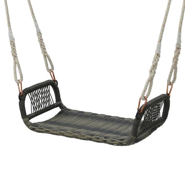 1-Person Rattan Porch Swing Chair Bench with Hanging Hemp Ropes Mix Brown PE Rattan