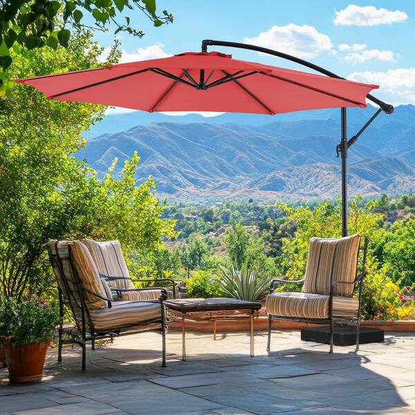 10 ft. Metal Offset Hanging Cantilever Patio Umbrella Outdoor Sun Shade with Easy Tilt Adjustment and 8 Ribs in Red