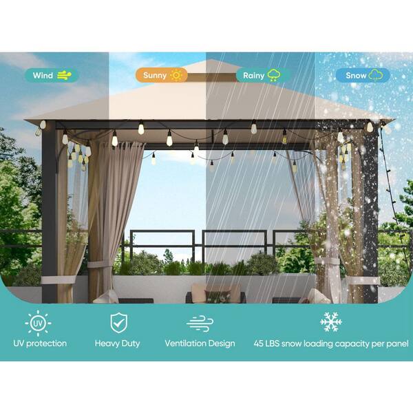 10 ft. x 10 ft. Beige Metal Portable Outdoor Softtop Gazebo with Mosquito Net, Sunshade Curtains Heavy Duty Roof Canopy