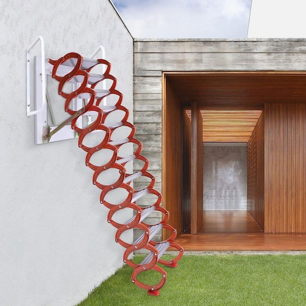 12 Steps Aluminum Alloy Wall Mounted Attic Ladder Telescopic Multi-Purpose Collapsible Attic Steps with Pull Down Orange