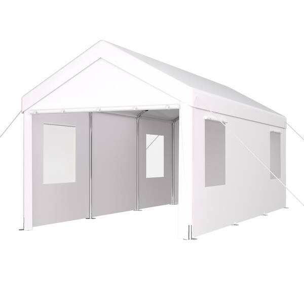 12 ft. W x 20 ft. D x 9.66 ft. H White Roof Plastic Carport, Heavy Duty with 2-Roll-Up Doors and 4-Ventilated Windows