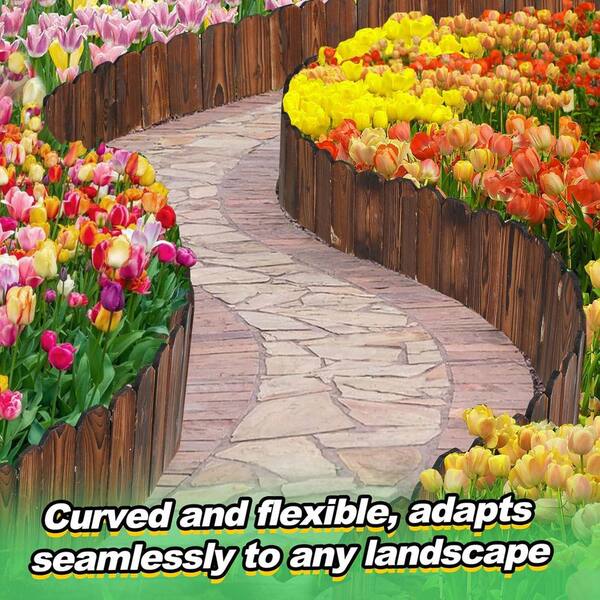 12 in. Pine Wood Garden Fence Rustic Easy Install Sturdy Landscape Edging No Fading for Yard Flower Bed Pathway