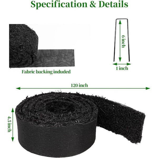 120 x 4.5 Recycled Rubber Mulch Mat Roll Permanent Landscaping Edging Border Black 2-Pack