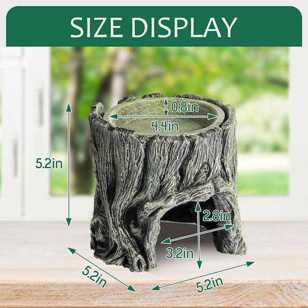 2-Pieces Resin Reptile Hide Cave with 2-Water Clay Basin, Amphibian Habitat Hideout Decor in Green