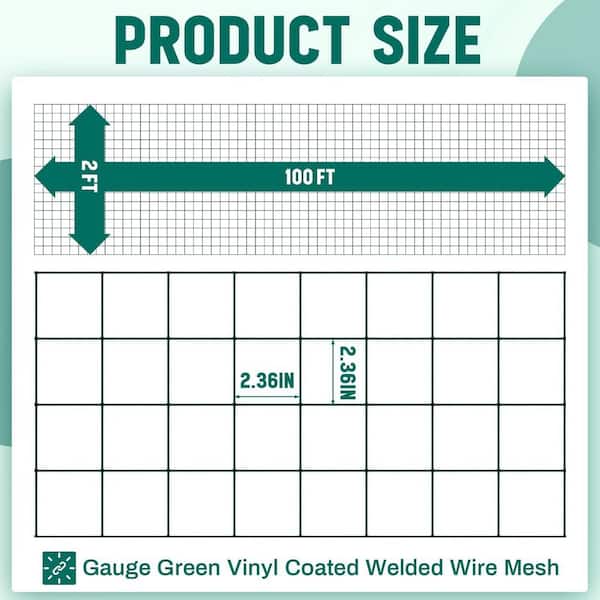 2 ft. PVC Coated Welded Wire Garden Fence Roll 100 ft. 16GA Green for Dog Border Yard Vegetable Protection
