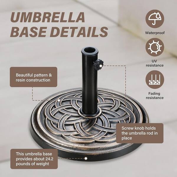 24.2 lbs. Heavy Duty Antique Cast Resin Patio Umbrella Base, 17.72 in. Round Stand for Outdoor,Lawn and Garden in Bronze
