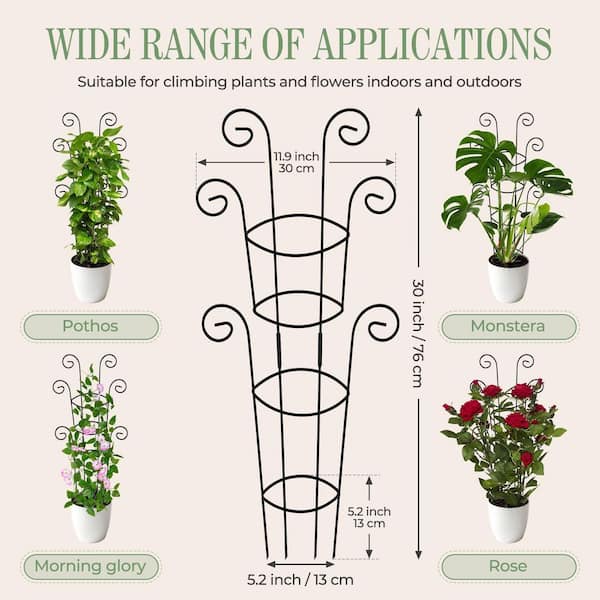 30 in. Tall Metal Plant Trellis for Climbing Indoor Plants Rustproof Sturdy Support for Vines 4-Pack