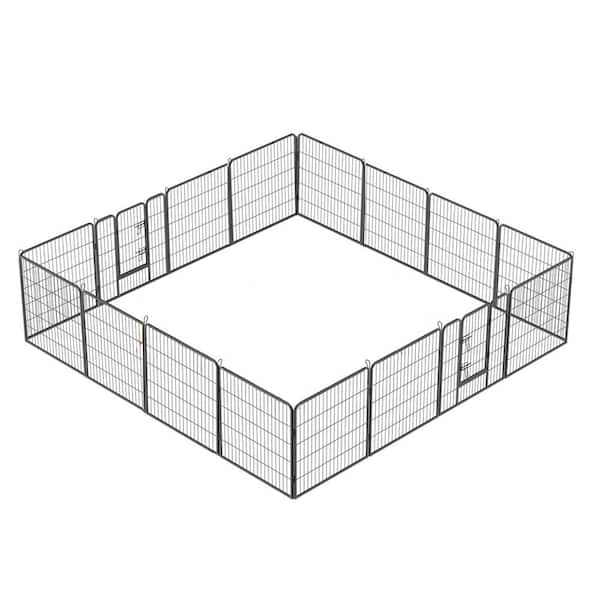 32 in. Metal 16-Panels Heavy Duty Portable Pet and Garden Fence with Doors and Anti-Rust