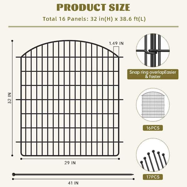 32 in. Rustproof Metal Wire Garden Fence with Gate Decorative Dog Fence Outdoor Tall Animal Barrier