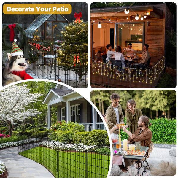 33in. High x 21.6ft. Wide Metal Garden Fencing Decorative Fence Low Threshold Door 10-Panels Garden Fence for Dogs, Pets