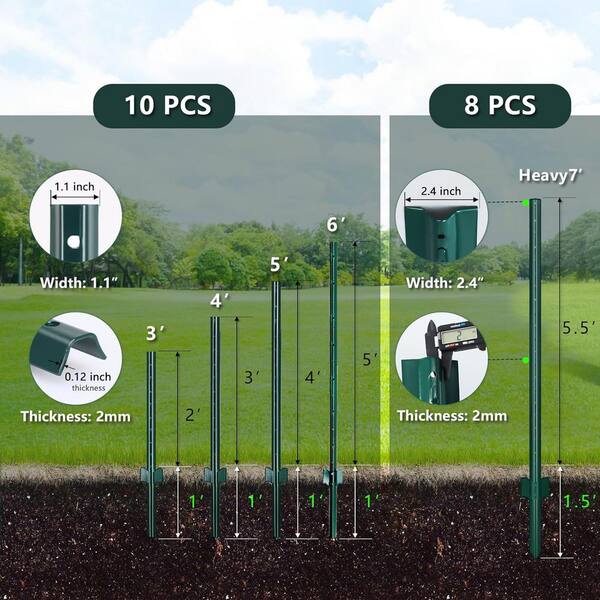 4 ft. Metal Fence Post Sturdy Duty U Channel Design with Adjustable Tabs for Garden Yard Outdoor Wire Green 10 Pack