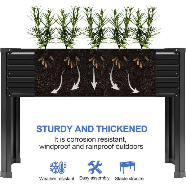 48 in. L x 18 in. W x 32 in. H Galvanized Raised Garden Bed Leg Patio Balcony Black Metal Planter Box 300 lb. Capacity