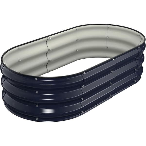 4x2x1 ft Galvanized Metal Raised Garden Bed Kit with Safety Edging Navy Blue Planter Box for Vegetables Flowers Herbs