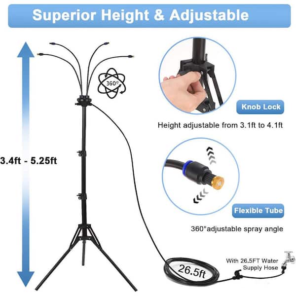 5.25 ft. Adjustable Stainless Steel Standing Misters with 26.5 ft. Water Line for Outdoor Cooling Portable Mist System