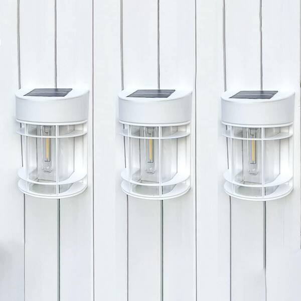 • Solar fence lights with warm decorative glow