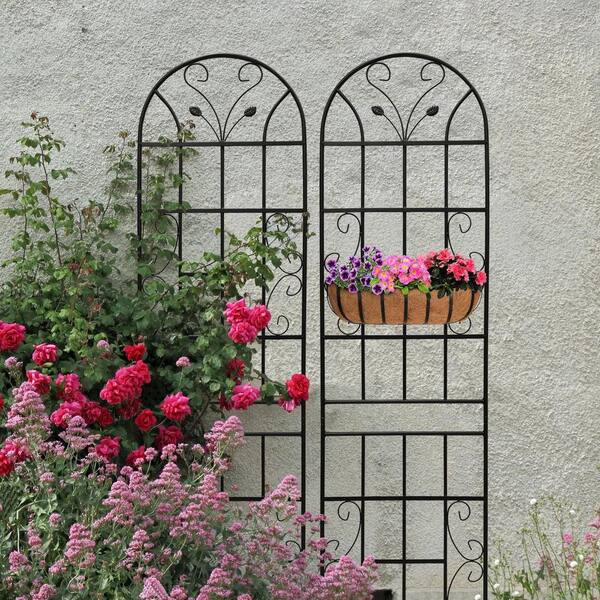 86.7 in. Black Metal Garden Trellis Panel with Rustproof Finish for Climbing Plants (2-Pack)