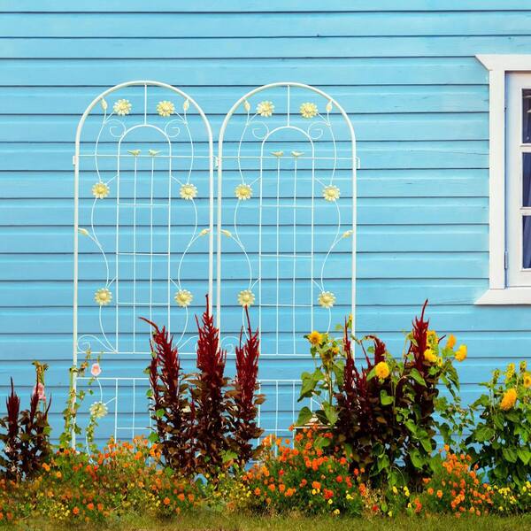 86.7 in. Outdoor Garden Trellis Metal Rustproof Climbing Plants Support in Cream White