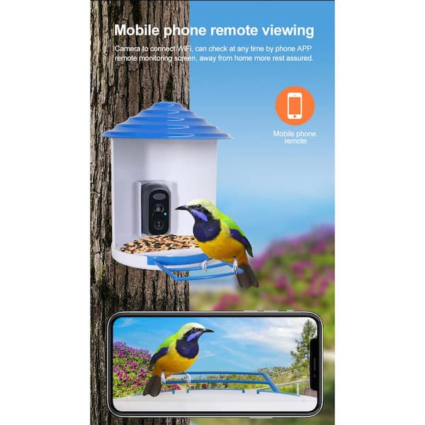 Blue and White ABS Smart Bird Platform Feeder with Camera 1080P HD AI Identify PIR Motion Auto Capture Video