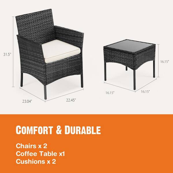 Elegant 3-Piece Patio Furniture Set: Stylish Wicker Rattan Chairs with Soft Cushions & Glass Table for Outdoor, Garden