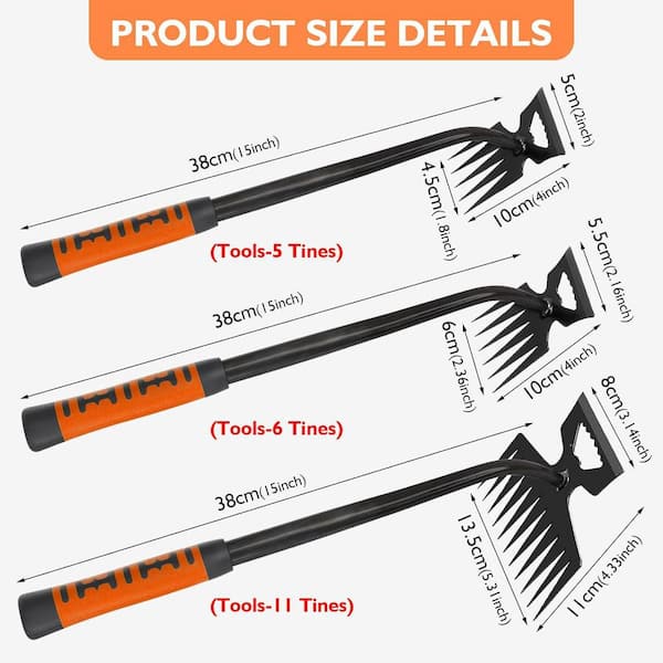 Multifunctional Weed Remover Tool with Ergonomic Handle, 11 Tines Portable Garden Manganese Steel Uprooting Weeder