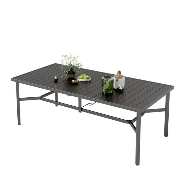 Outdoor Rectangular Metal Patio Dining Table with Umbrella Hole for Backyard, Lawn, Garden