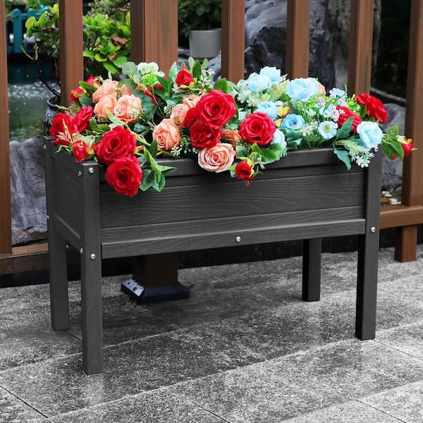 Raised Garden Bed 29.9 in. L x 14.2 in. W x 19.7 in. H Black Plastic All-Weather Elevated Planter Box with Legs