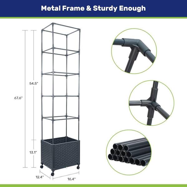 Raised Garden Bed Planter Box with Trellis 67.6 in. H Black Metal Self-Watering Mobile Planter for Climbing Plants