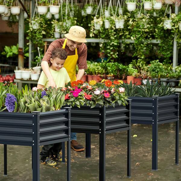 Raised Garden Bed with Legs 48in L x 24in W x 32in H Galvanized Metal Planter Box Midnight Blue Elevated for Flowers