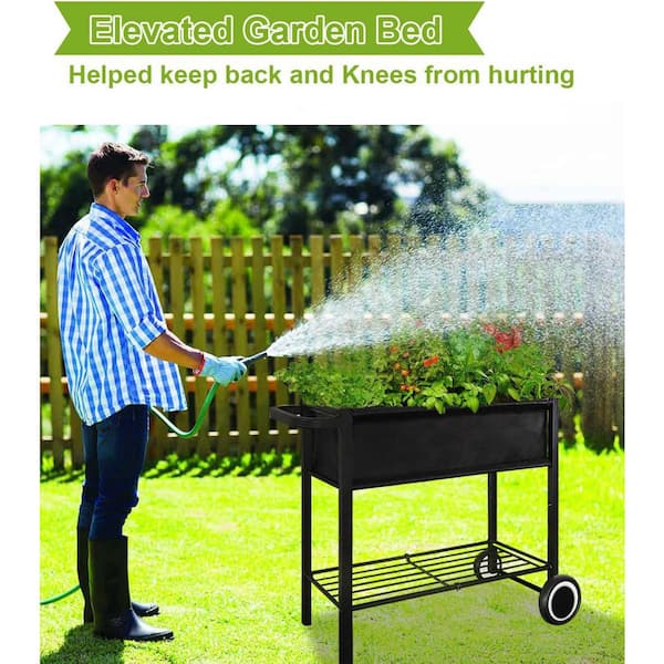 Raised Garden Bed with Legs on Wheels 38.5 in. L x 13 in. W x 31 in. H Outdoor Planter Box Black Metal Elevated Planter