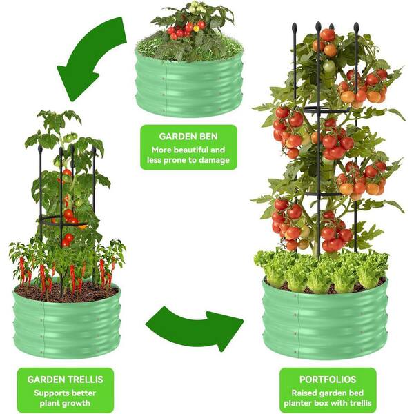 Raised Garden Bed with Trellis 23.6in L x 23.6in W x 60in H Galvanized Metal Tomato Cage Planter Box for Climbing Plants
