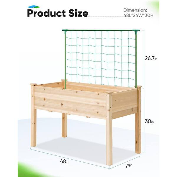 Raised Metal Garden Bed with Trellis 48 in. x 24 in. x 30 in. Silver Metal with Liner Natural Fir Elevated Planter Box