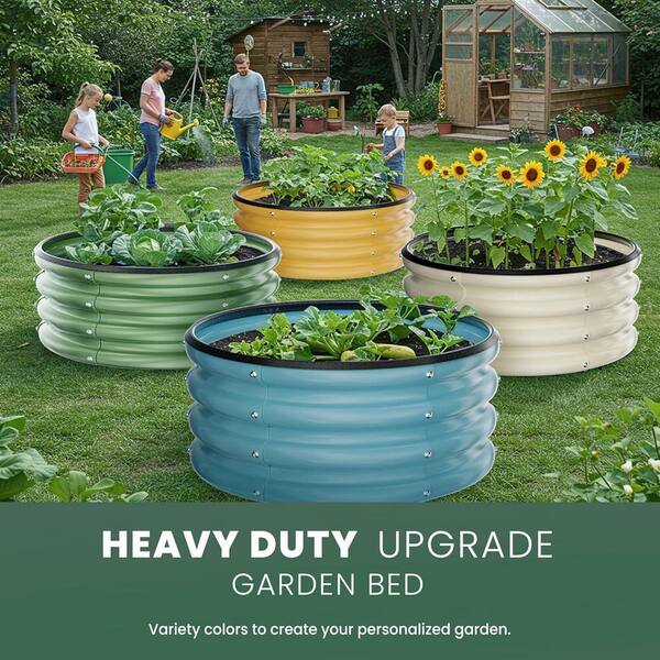 Round Galvanized Steel Raised Garden Bed Kit 24in. L x 24in. W x 12in. H Optimized Drainage Black Outdoor Planter