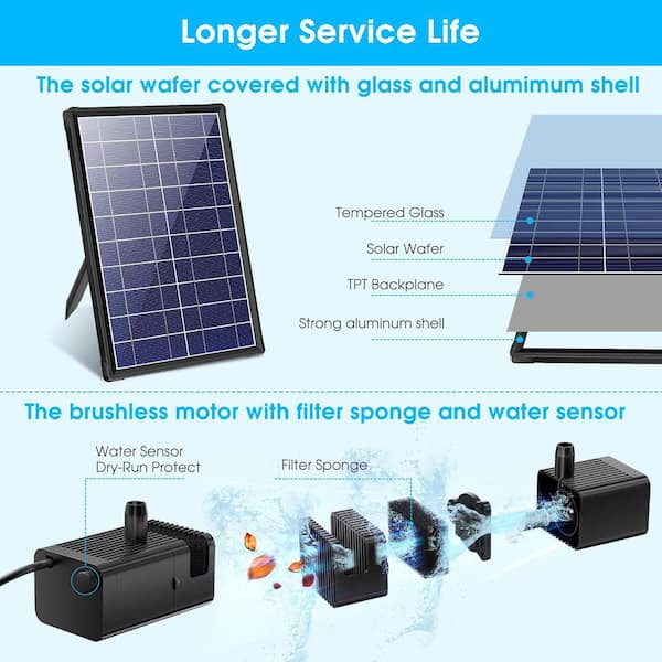 Solar Fountain Pump with Battery Backup for All-Day Use, 5 ft. Tubing, 5 Nozzles for Bird Bath, Garden Pond, Fish Tank