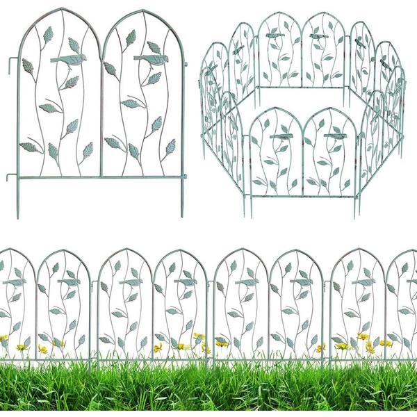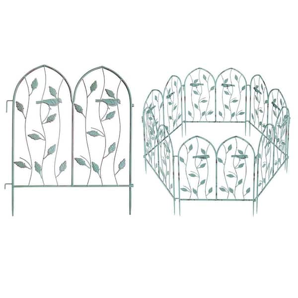 Vintage 24 in. Arched Metal Garden Fence Panels 6 Pack Decorative Iron Picket Border for Yard Flower Bed